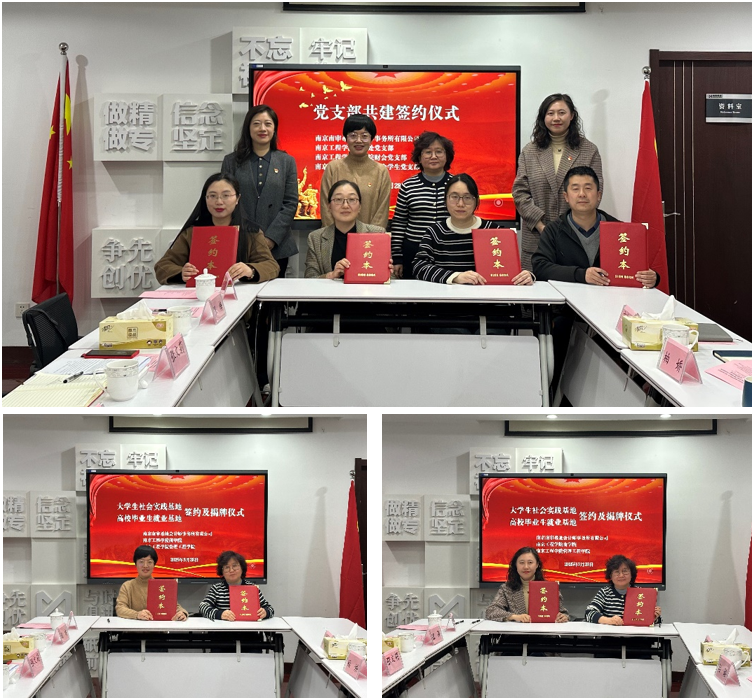 会上,各方代表签订了党建共建协议,商学院、管理工程学院与南京南审希地会计师事务所有限公司分别签订了大学生社会实践、就业基地共建协议。大家还结合正在进行的深入贯彻中央八项规定精神学习教育进行了集中学习,认真观看了中央广播电视总台制作的专题微视频《留得清气满乾坤》。