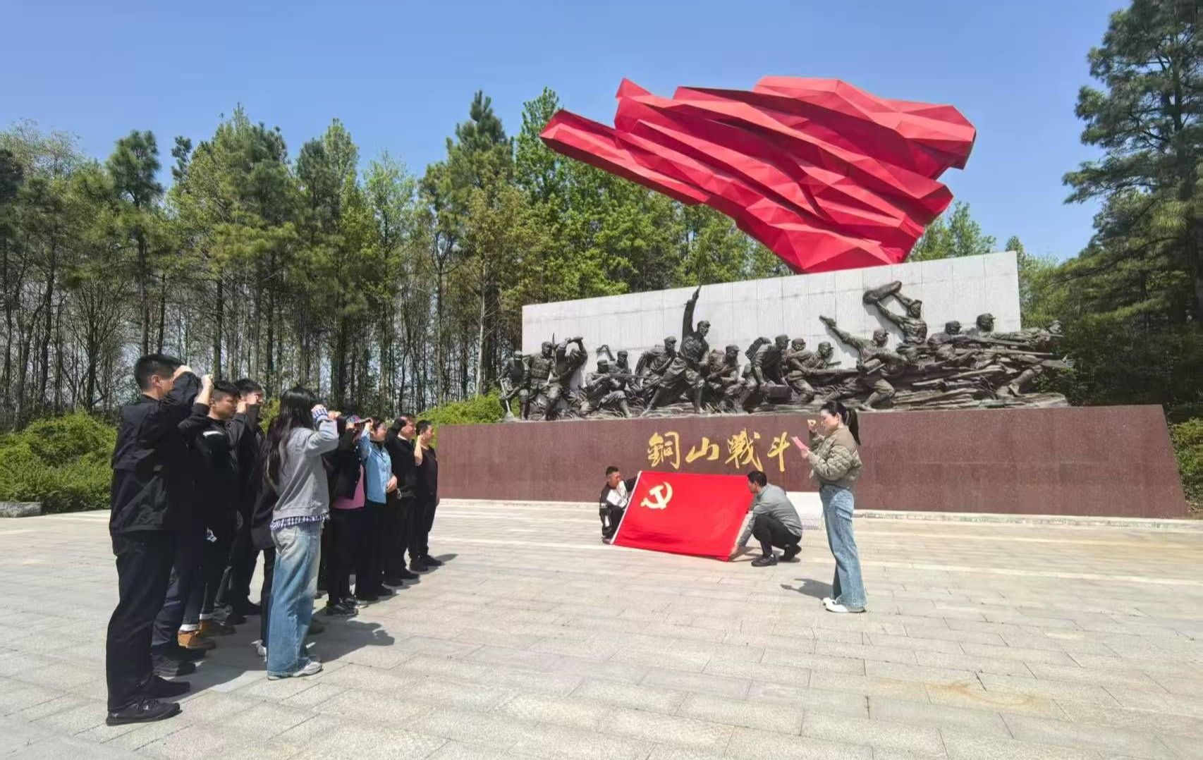 在红色里佳山村,党员们参观了沧海一粟·开国大将粟裕纪念馆,该馆通过照片、视频、资料及场景复原等多种形式,全面展示了粟裕将军卓越的战役指挥才能及其在政治和军事上的远见卓识。在铜山战斗纪念广场,足球教研室党支部的老党员贾文生为新发展党员赵泽宇佩戴党徽,全体党员重温入党誓词,这一庄重的仪式不仅象征着党徽的传递,更是信仰与精神的延续。
