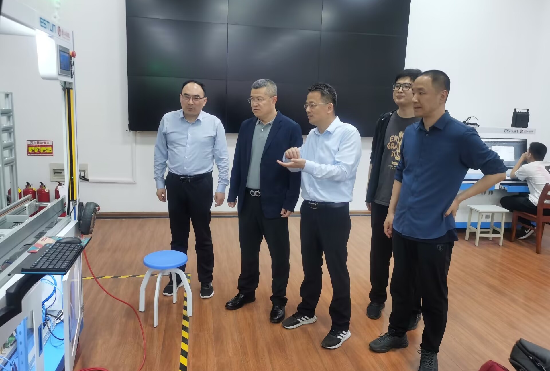 会前,于金鹏一行参观了创新创业学院及自动化学院实验室,实地考察了数字孪生系统、工业自动化流水线等实验平台,观摩学生创新作品。