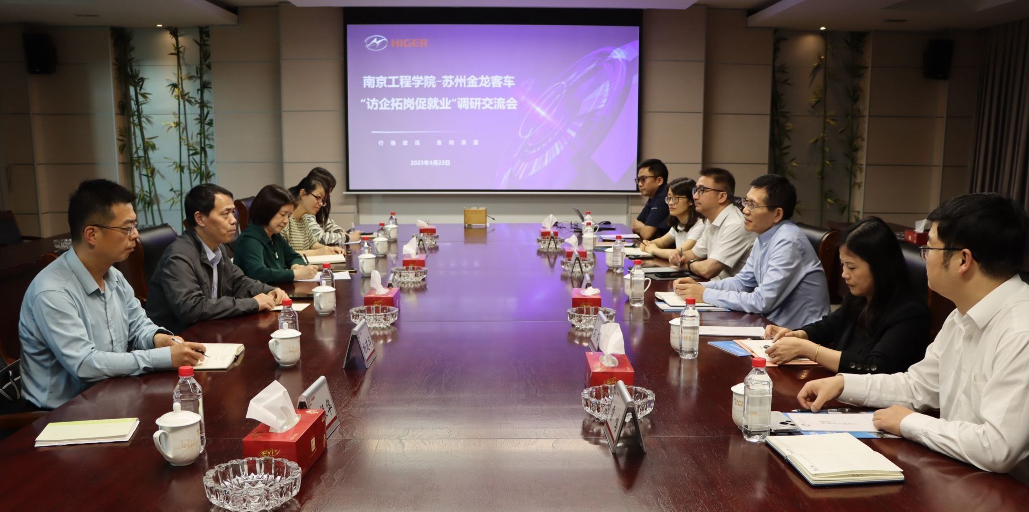 座谈会上,苏州金龙人力资源总监秦志飞详细介绍了企业发展历程、产业布局及人才需求,指出随着海外市场拓展,公司急需“技术+外语”复合型人才。赵振东重点介绍了学院学科建设、人才培养以及新能源技术研发成果等情况,希望与企业共建产学研平台,联合开展技术攻关。张相琼针对新能源智能汽车产业国际化发展需求,与企业就“外语赋能技术出海”人才培养路径进行了探讨。双方围绕订单式培养、联合技术攻关、校企课程共建、就业基地建设等方面达成初步合作意向。