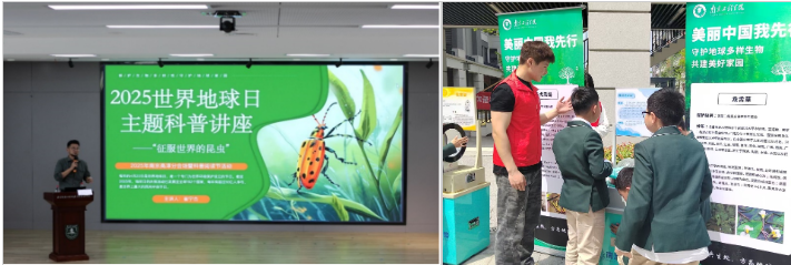 学院优秀校友、南京本然科普中心理事长、生态环境部南京环境科学研究所工程师崔宁杰作《征服世界的昆虫》专题讲座,揭秘了昆虫如何通过适应性进化成为地球最成功的生物类群,现场反响热烈。讲座后,与会专家参观了科普作品展示区,学生志愿者团队还与现场的小学生进行了互动交流。