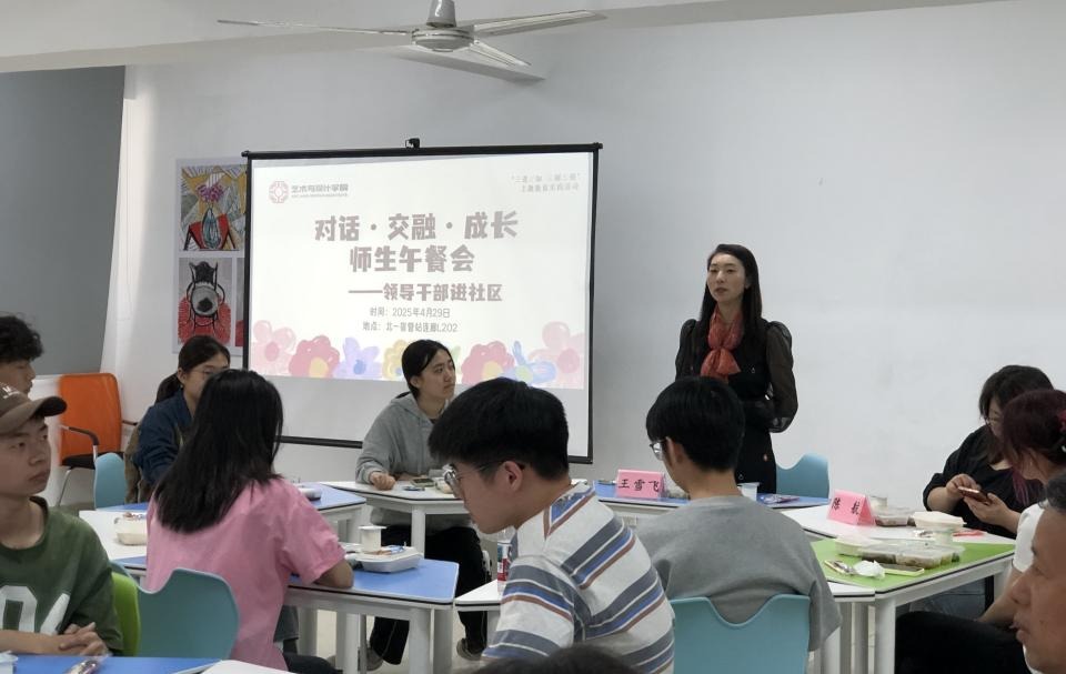 为深化“三全育人”理念,畅通师生对话渠道,发挥“一站式”学生社区育人功能,4月29日,艺术与设计学院在北一宿舍连廊L202举办“对话・交融・成长”师生午餐交流会。学院党委书记王雪飞,副院长杨成立、侯建军等与18名学生代表共进午餐,深入交流。