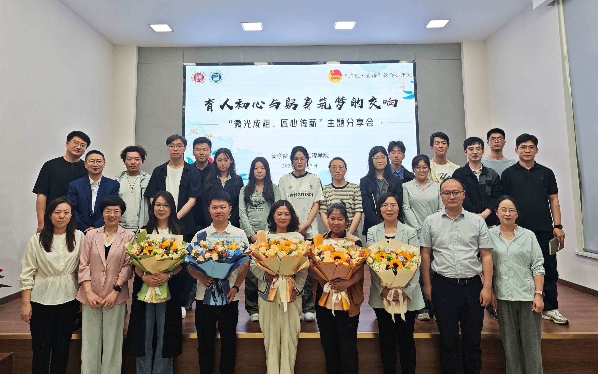4月27日,在“五一”劳动节、“五四”青年节即将来临之际,商学院与管理工程学院联合举办“微光成炬、匠心传薪”信仰公开课。通过教师、劳模、校友与学生的多元对话,搭建多维互动、知行合一的育人舞台。两院党政负责人、师生代表及校友嘉宾逾百人齐聚经管楼A107报告厅,共同聆听初心故事,感悟匠心传承。