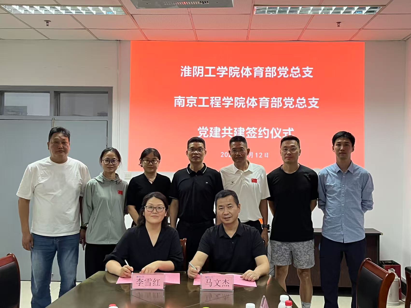 在淮阴工学院,体育部党总支副书记、主任马文杰一行受到了淮阴工学院体育部党总支副书记、主任王冬的热情接待。双方签署党建共建协议,就党建工作与体育教学、训练、竞赛等主责主业的融合发展进行了深入交流,并探讨了未来进一步合作的可能性。
