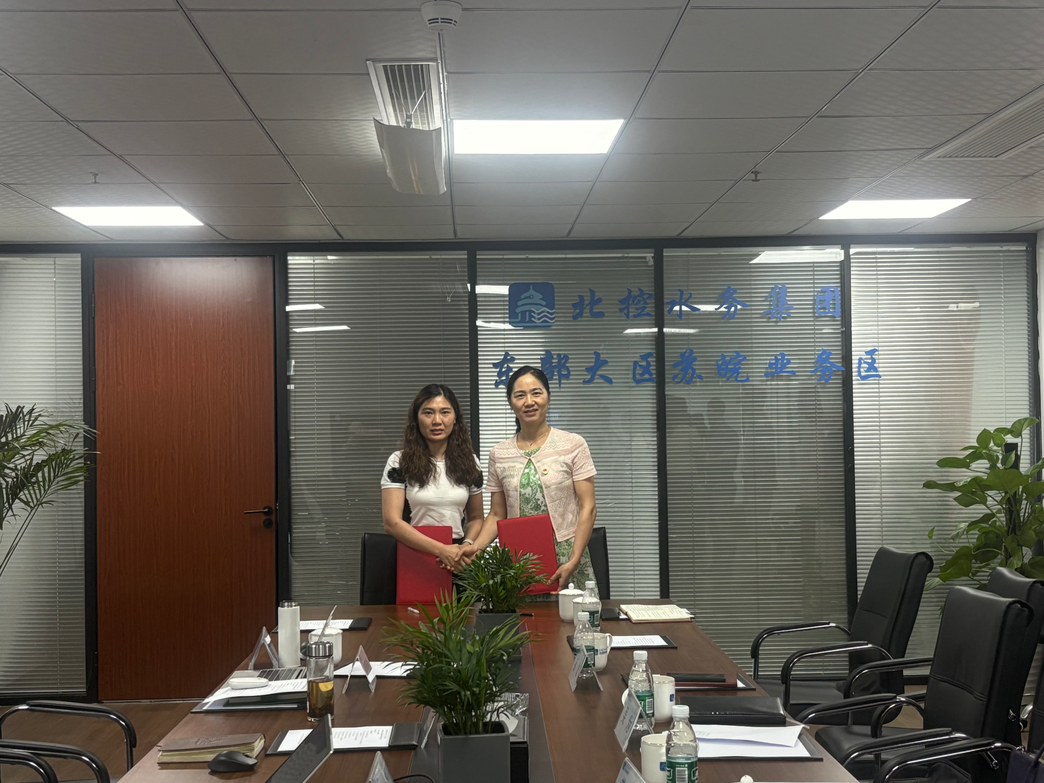 会上,黄赛平与北控水务集团东部大区副总经理杨兰签署党建共建协议,通过联合主题党日、环保公益行动、技术沙龙等形式,推动校企深度合作。杨兰详细介绍了企业的发展历程、业务范围、技术优势以及人才需求。吴功德介绍了学校发展概况及学院的专业设置、师资力量、科研成果以及人才培养特色。双方就学生认识实习、毕业设计指导、横向课题申报等议题达成初步合作意向。