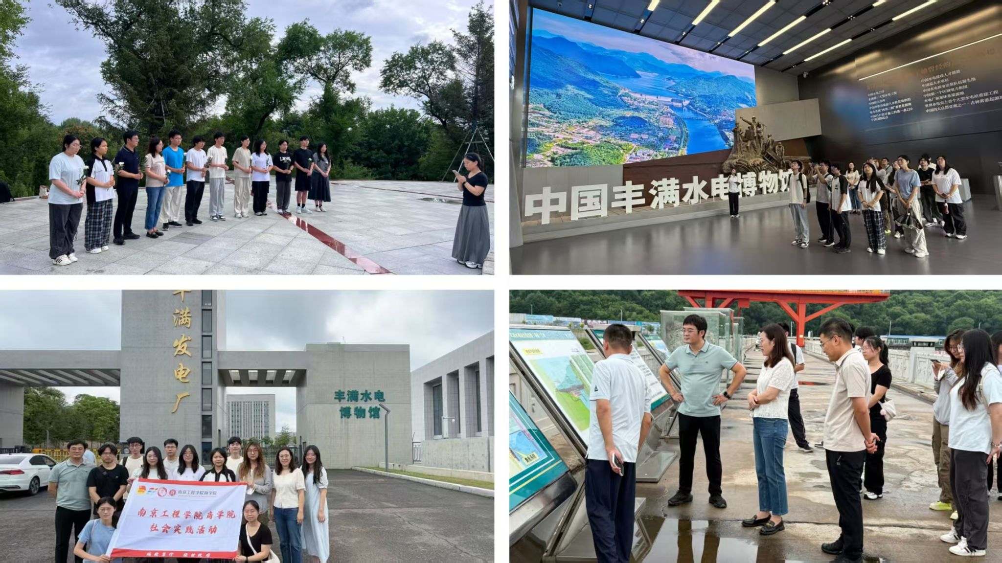 在吉林革命烈士陵园,师生通过默哀、献花等形式缅怀杨靖宇等抗联英烈,重温东北抗日联军的英勇事迹。在丰满水电博物馆,团队成员深入了解水电站建设历史,感悟自力更生、艰苦奋斗的民族精神。实地考察丰满大坝时,重点调研了生态鱼道等环保设施,切身感受"绿水青山就是金山银山"的发展理念。“这座融合工程智慧与生态保护的水电丰碑,正是服务国家高质量发展的生动教材。”刘颖希望同学们通过沉浸式学习与生态考察,深化对新时代青年使命担当的理解。