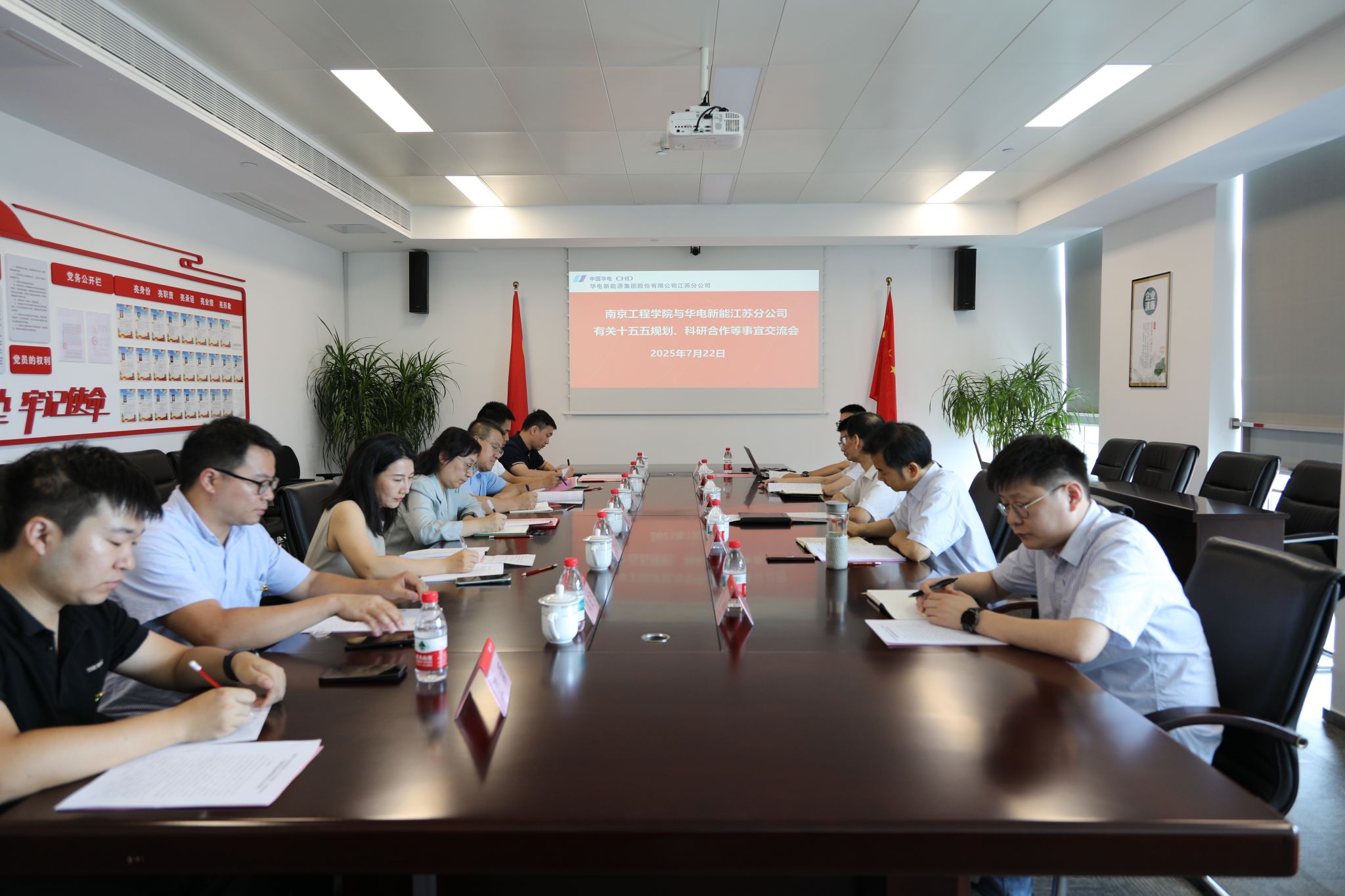 为进一步深化产教融合,推进科研协同与党建共建,拓展校企合作新领域,7月22日,能源与动力工程学院党委书记徐艳、副院长(主持工作)薛锐率队赴华电新能源集团股份有限公司江苏分公司开展党建共建活动。华电新能源江苏分公司总经理徐小东、副总经理颜全堂等领导及相关部门负责人热情接待并参与座谈。
