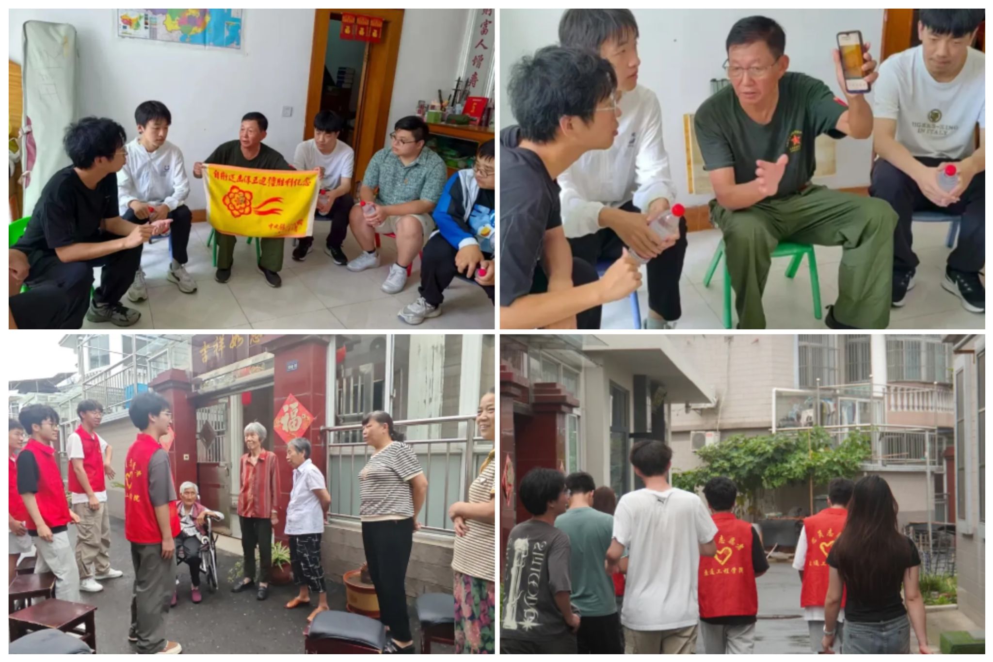 在扬州市长鑫社区,“薪火相传”实践团成员开展敬老服务,为高龄老人送去慰问物资,帮助整理院落环境。团队特别走访了对越自卫反击战老兵王永贵,聆听革命故事,传承红色精神,汲取奋进力量。在绥化市津河镇松林村,“黑土兴乡”实践团为村民提供整理爱心图书馆书籍、登记造册等服务,方便村民借阅;清扫村委会办公区域,改善工作环境。“电暖乡行”团队则发挥专业优势,入户为村民普及安全用电知识,并帮助村民检修家庭电路,消除安全隐患。