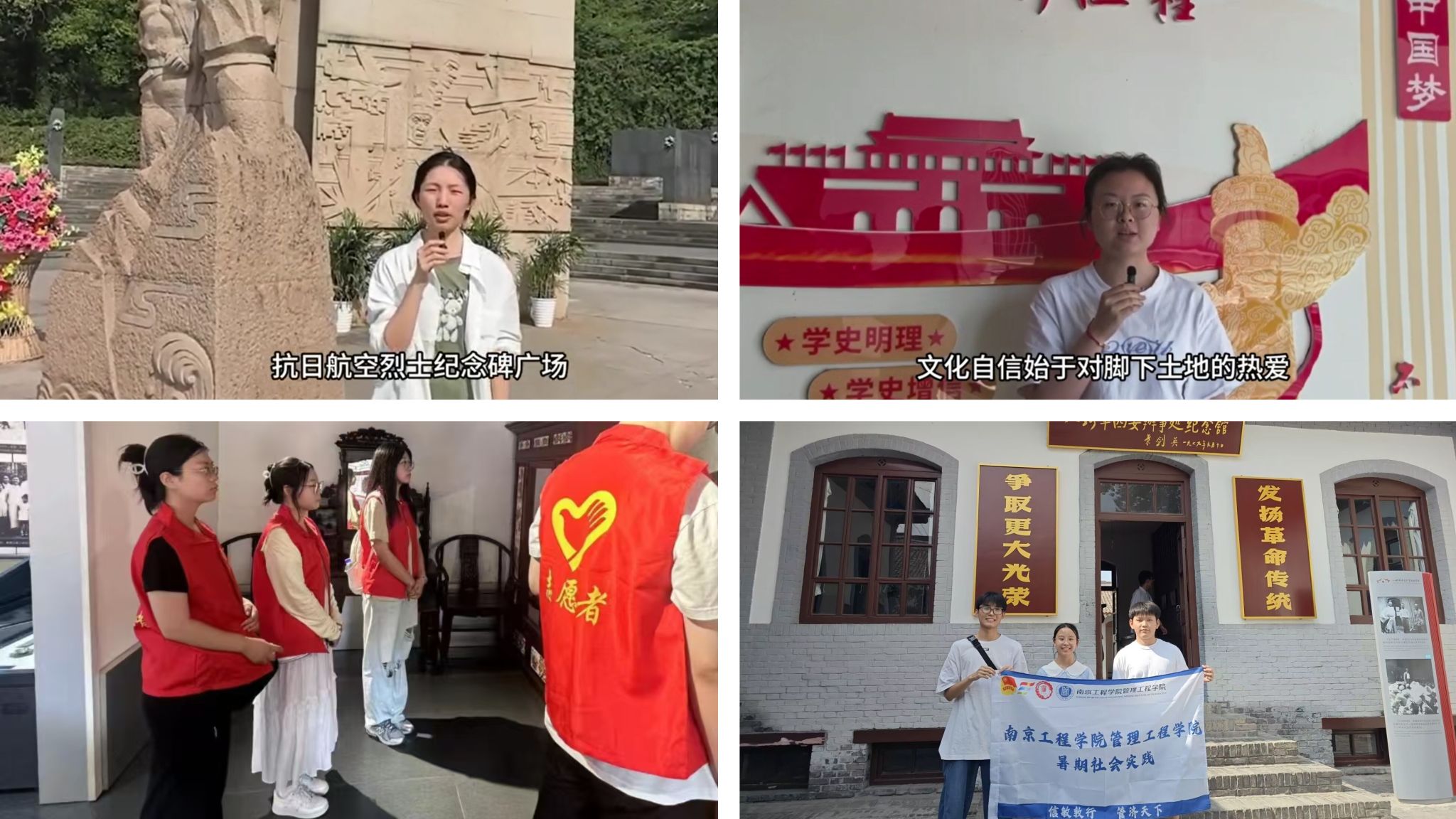 “薪火传承”实践团队走进南京抗日航空烈士纪念馆,以馆藏的飞行日志扫描件、烈士遗物照片为核心,开展红色微课录制,在镜头里记录“鹰击长空”的壮烈故事;“星火燎原”实践团队奔赴盐城顾正红烈士故居开展研学实践,搭起“移动宣讲点”,开展红色故事宣讲,并设计红色历史知识卡片,与游客进行深入互动;“红色信仰”实践团队走进八路军西安办事处纪念馆,系统学习其作为“红色堡垒”“红色兵站”“红色桥梁”的历史功能,并结合展馆内周恩来办公旧址、电报室原貌复原区等场景,组织实践感悟交流会。