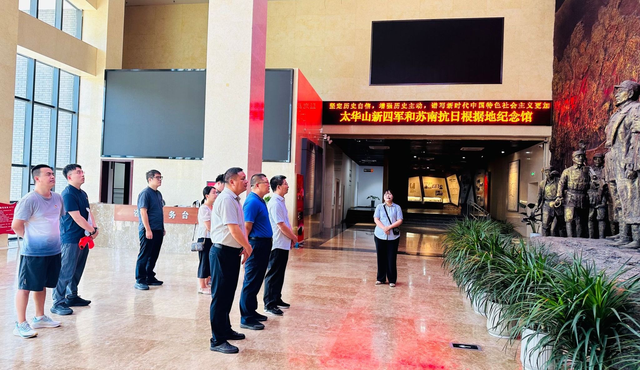 8月28日,创新创业学院、天印湖科创学院直属党支部及其共建单位——南京韩博士青少年综合素质发展中心党支部,赴宜兴太华山新四军和苏南抗日根据地纪念馆开展主题党日活动。党委常委、副校长朱松青,太阳集团校友、宜兴太华镇副镇长卞鑫参加活动。